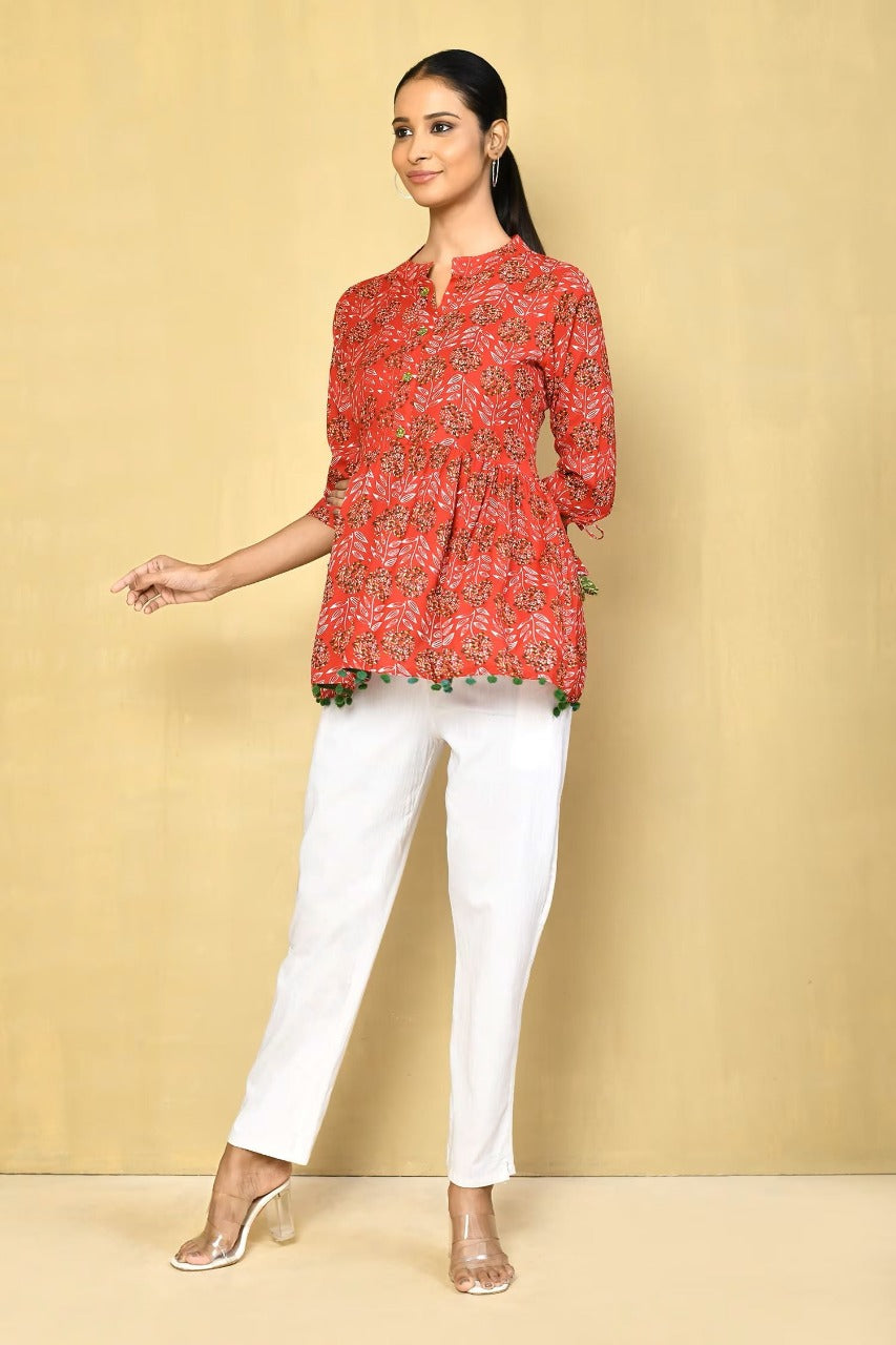 Vilai Jaipur Women's Printed Top With Pom Pom
