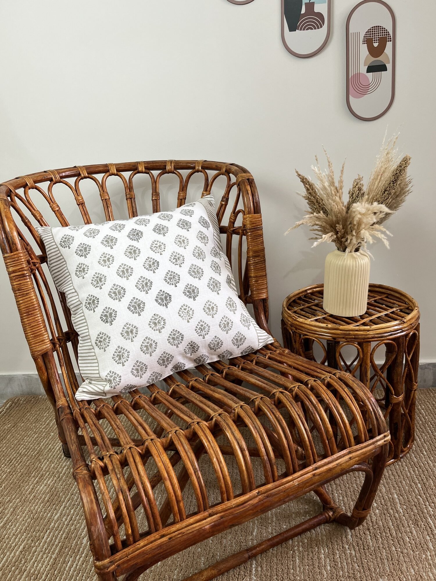 Bring timeless handcrafted charm into your home with our hand block printed cotton slub cushion cover. Made from 100% natural slub cotton, each piece features traditional floral and botanical motifs printed by skilled artisans, giving every cover a unique, slightly textured look.