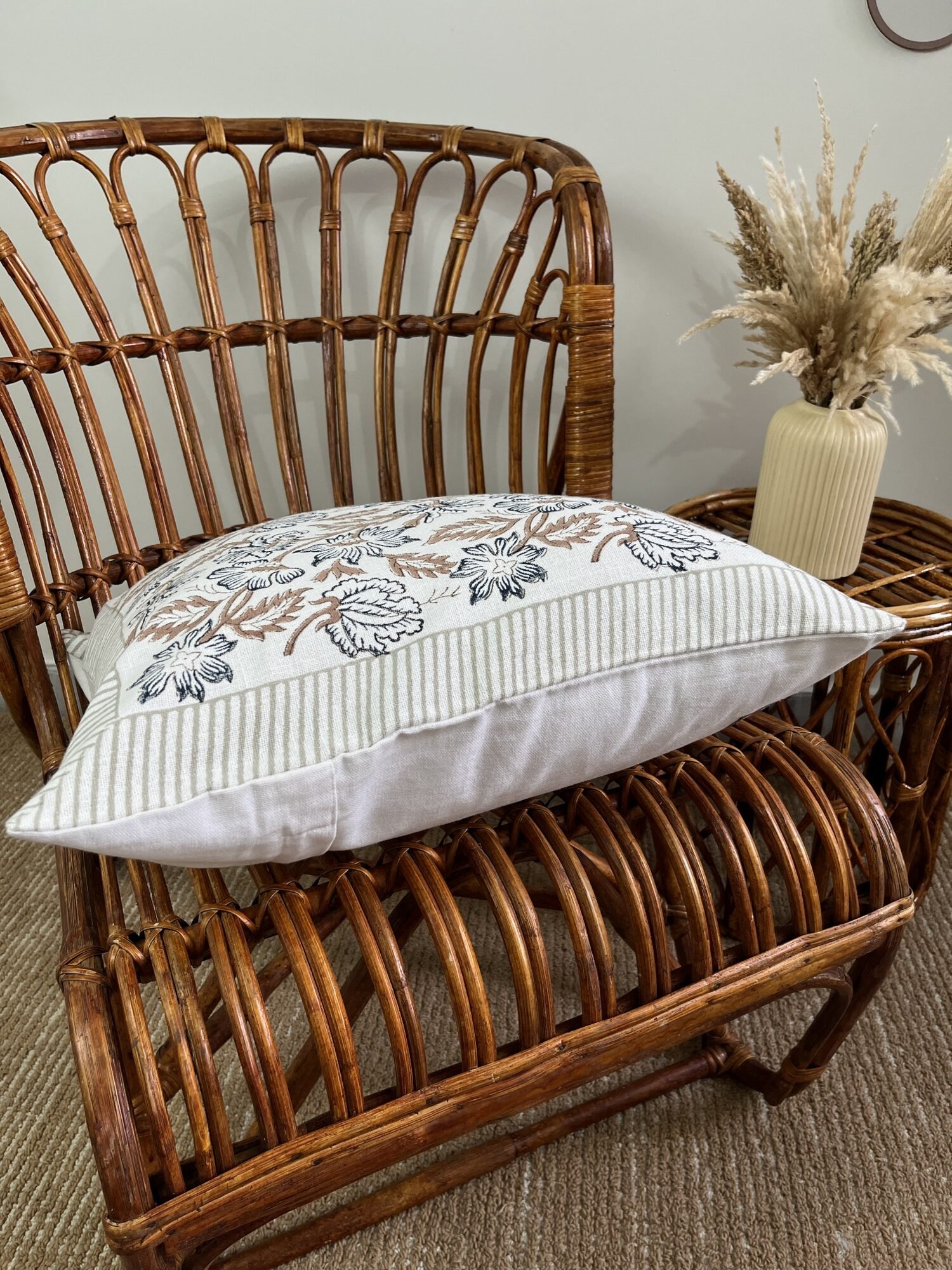 The soft neutral tone blends beautifully with modern, boho, farmhouse, and earthy interiors — perfect for sofas, beds, reading corners, or accent chairs.