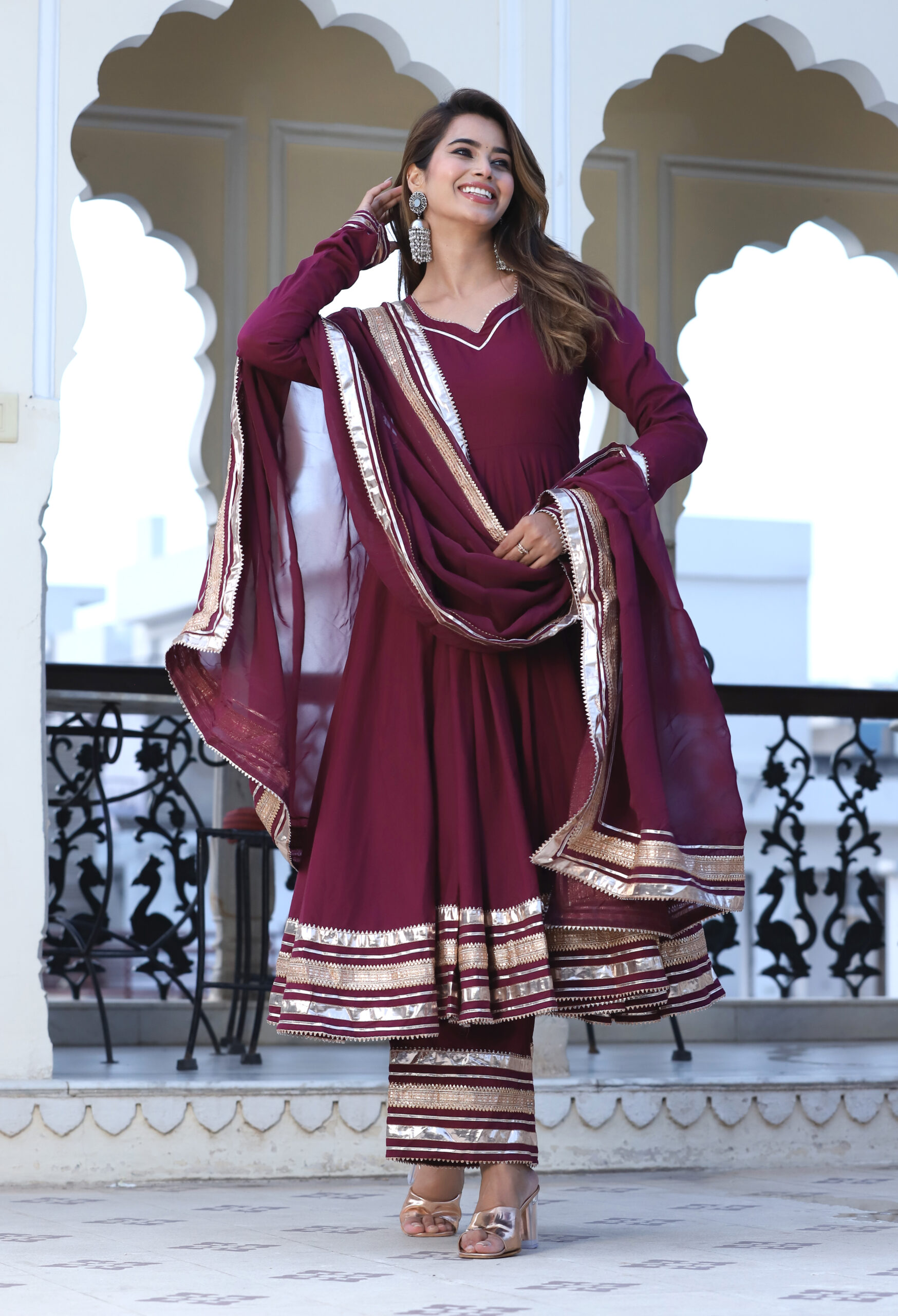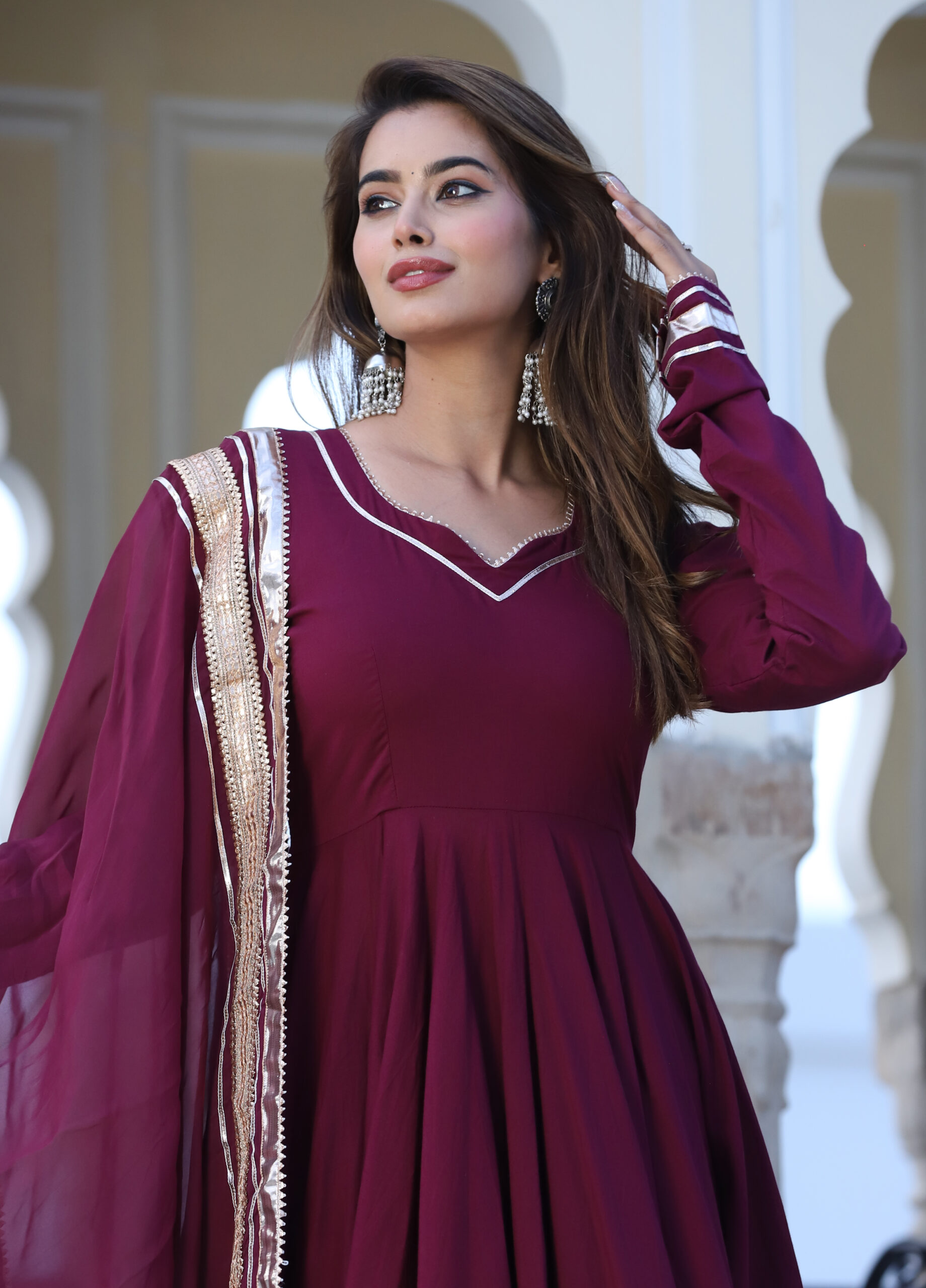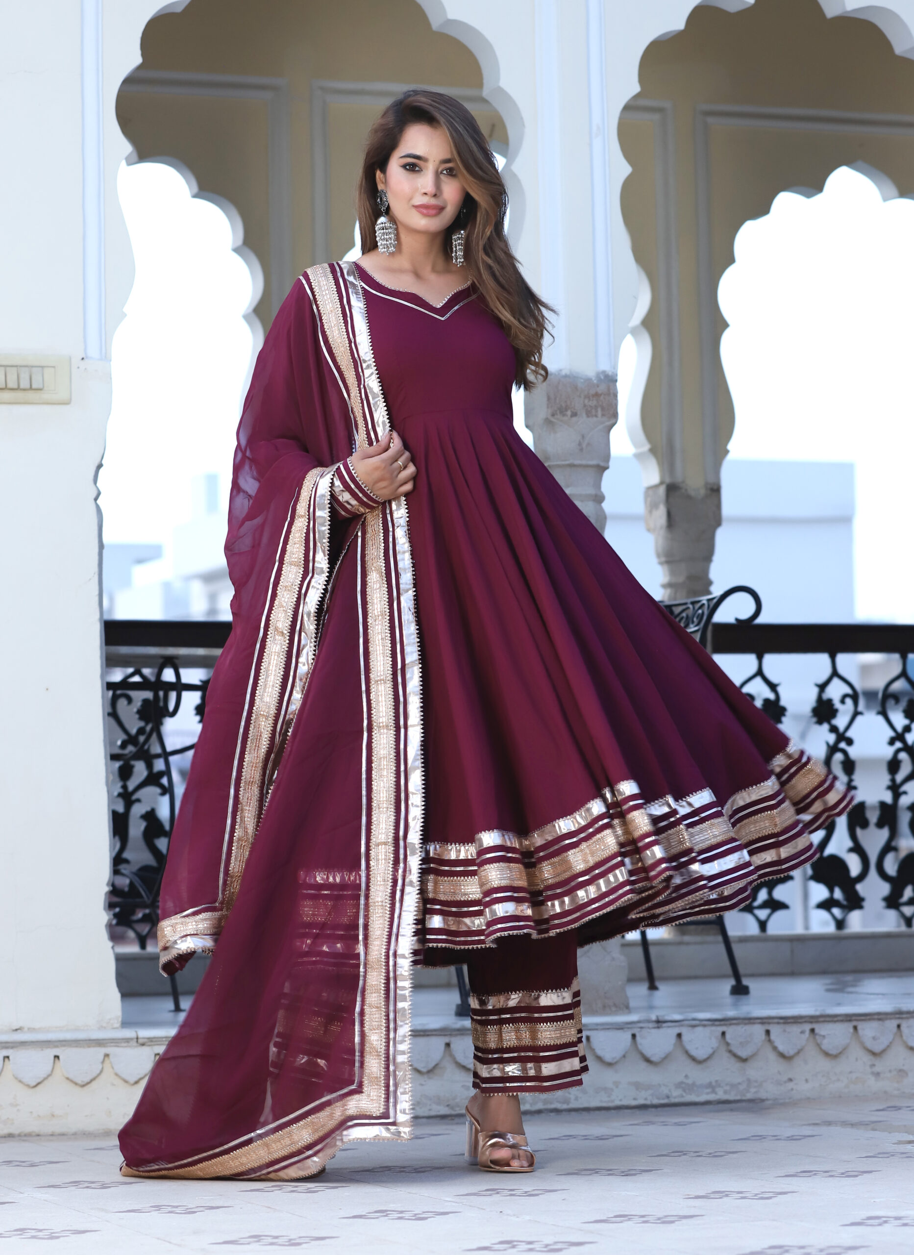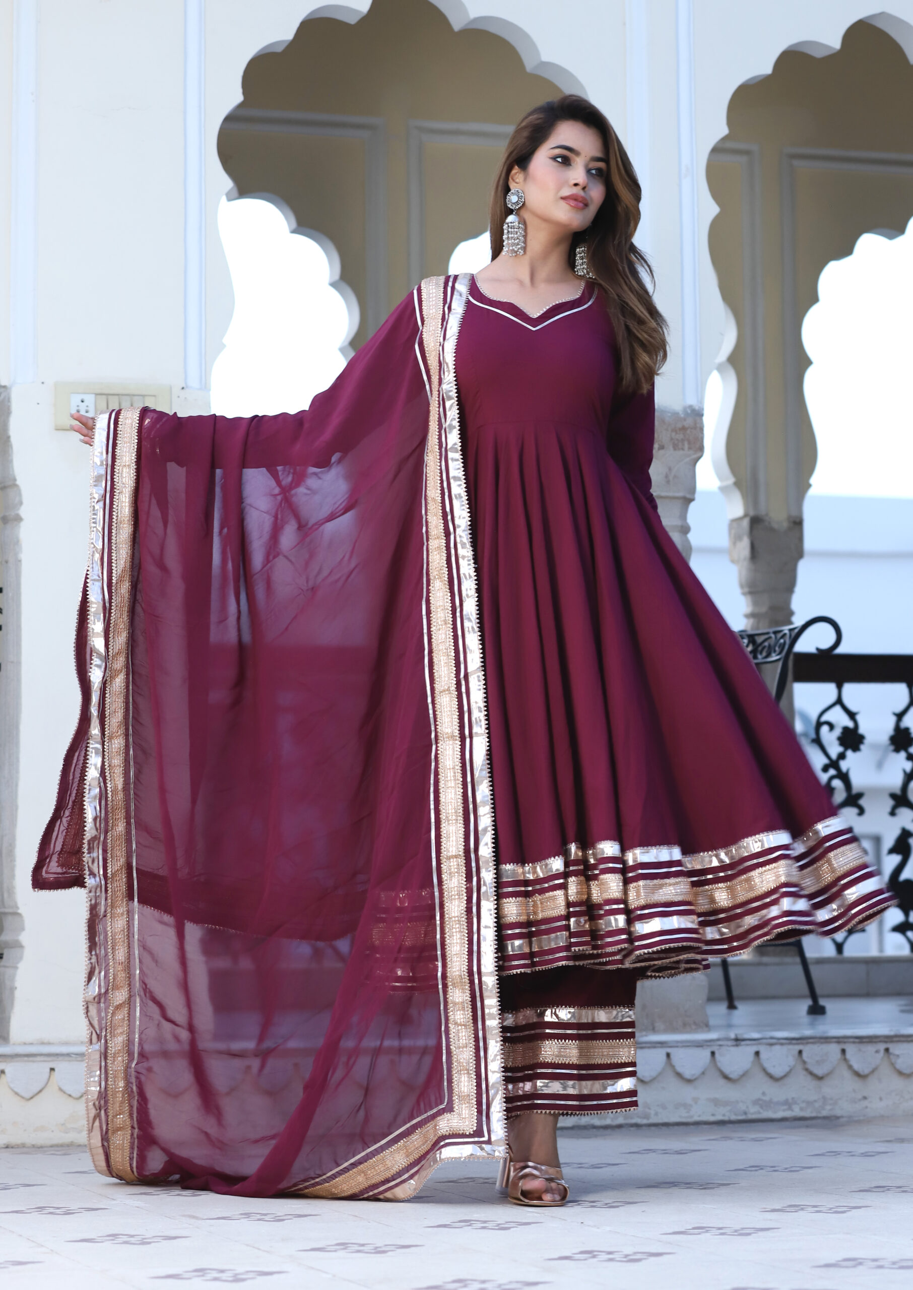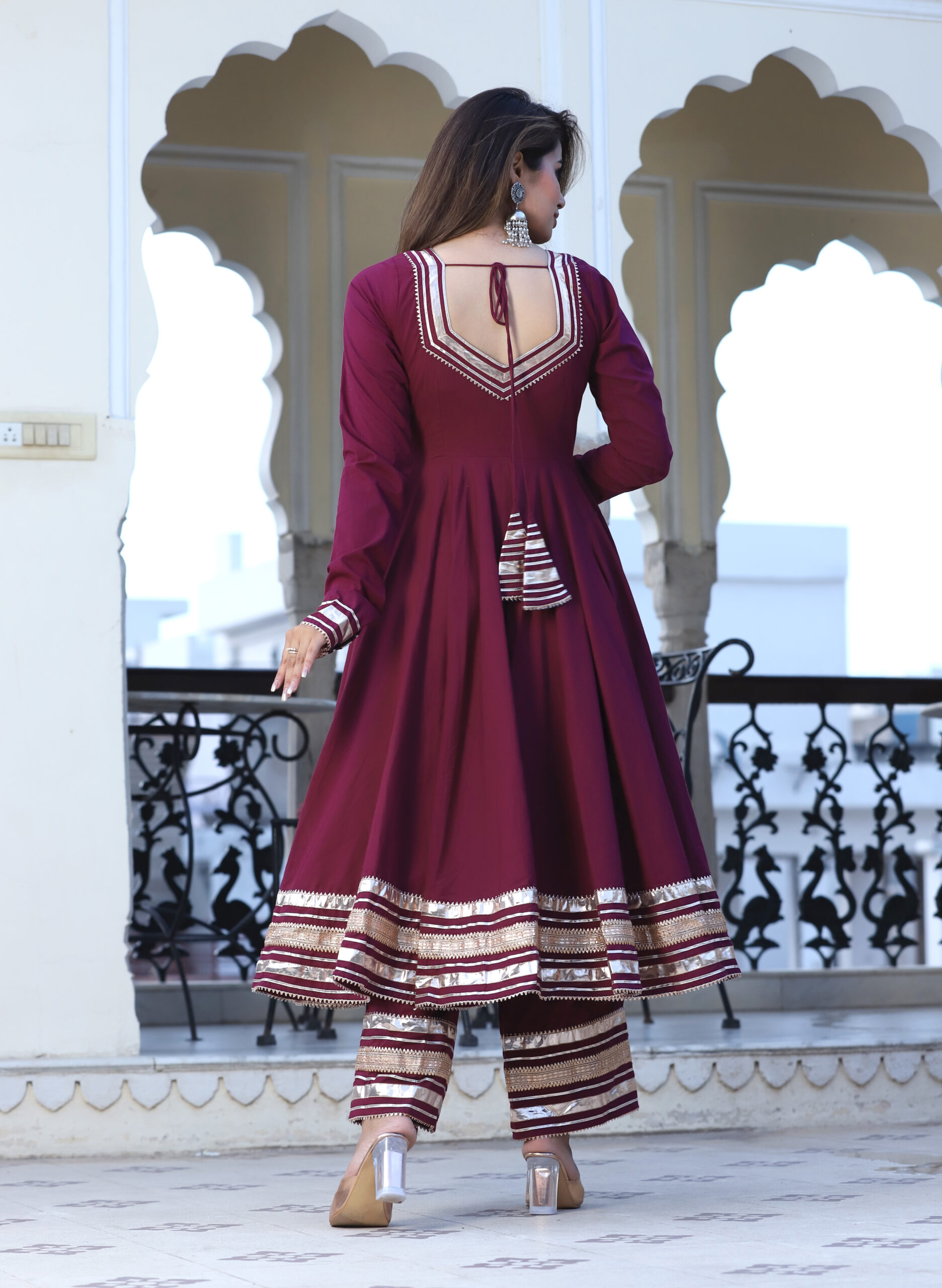Be the first to review “Burgundy Cotton Anarkali Set”