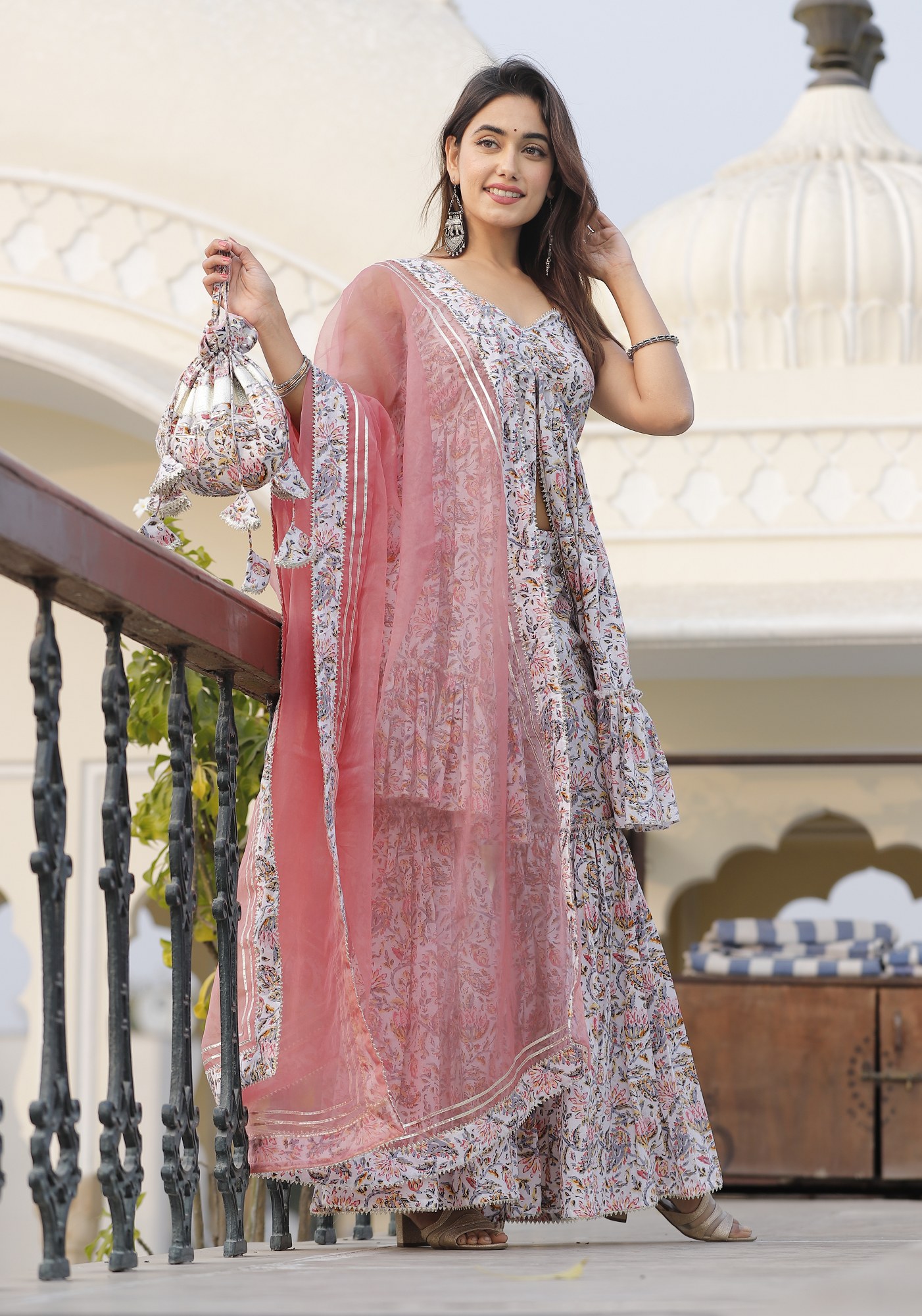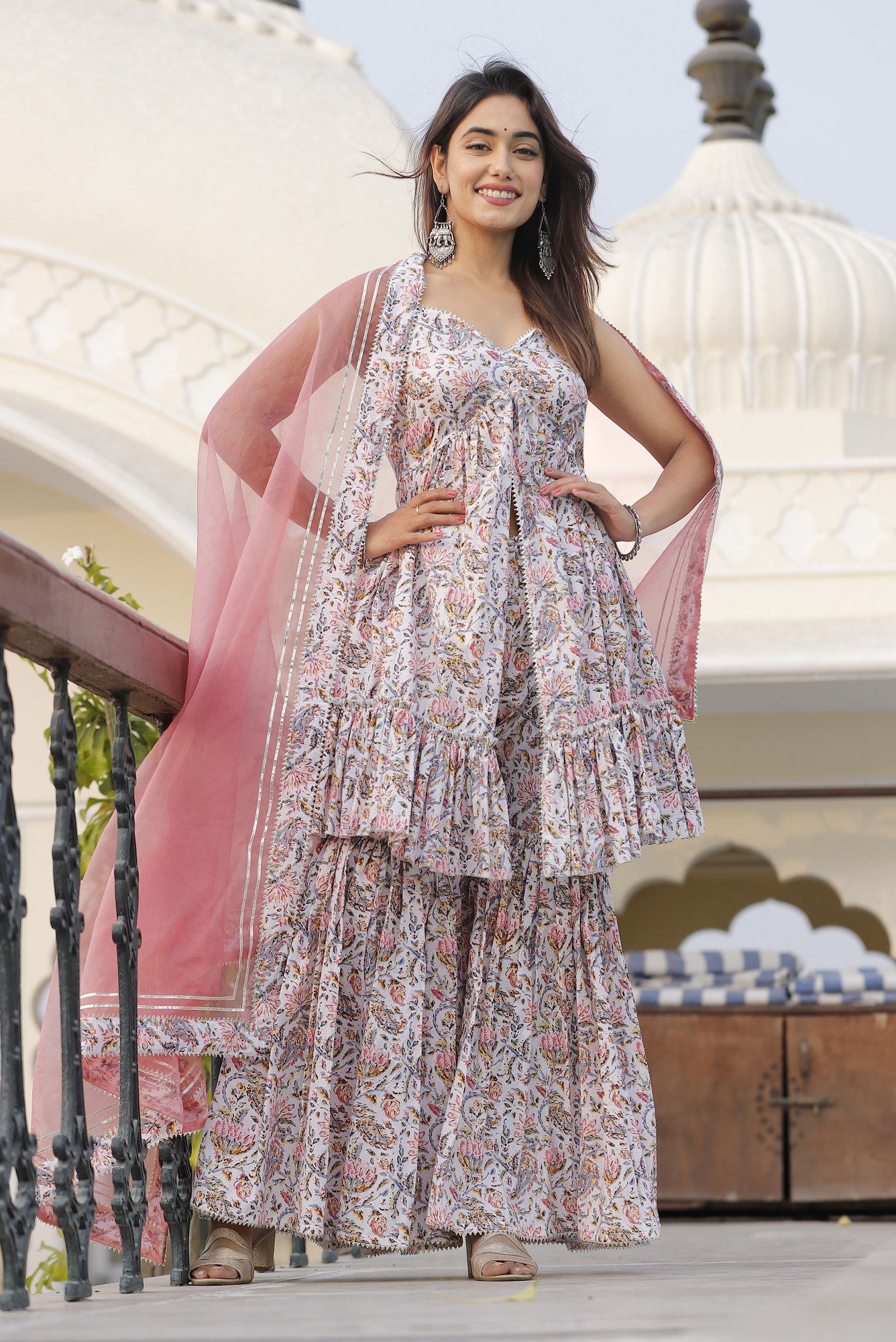 • Flattering sharara pattern with flowing pants