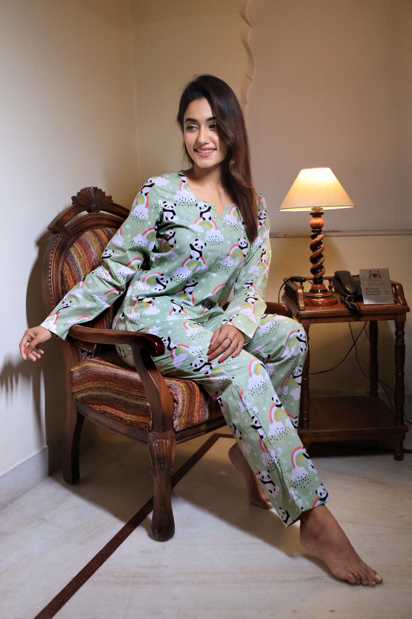 This night suit set is available in various sizes to accommodate different body types and preferences. The full sleeves of the night suit offer added warmth and coverage, making it perfect for colder nights.