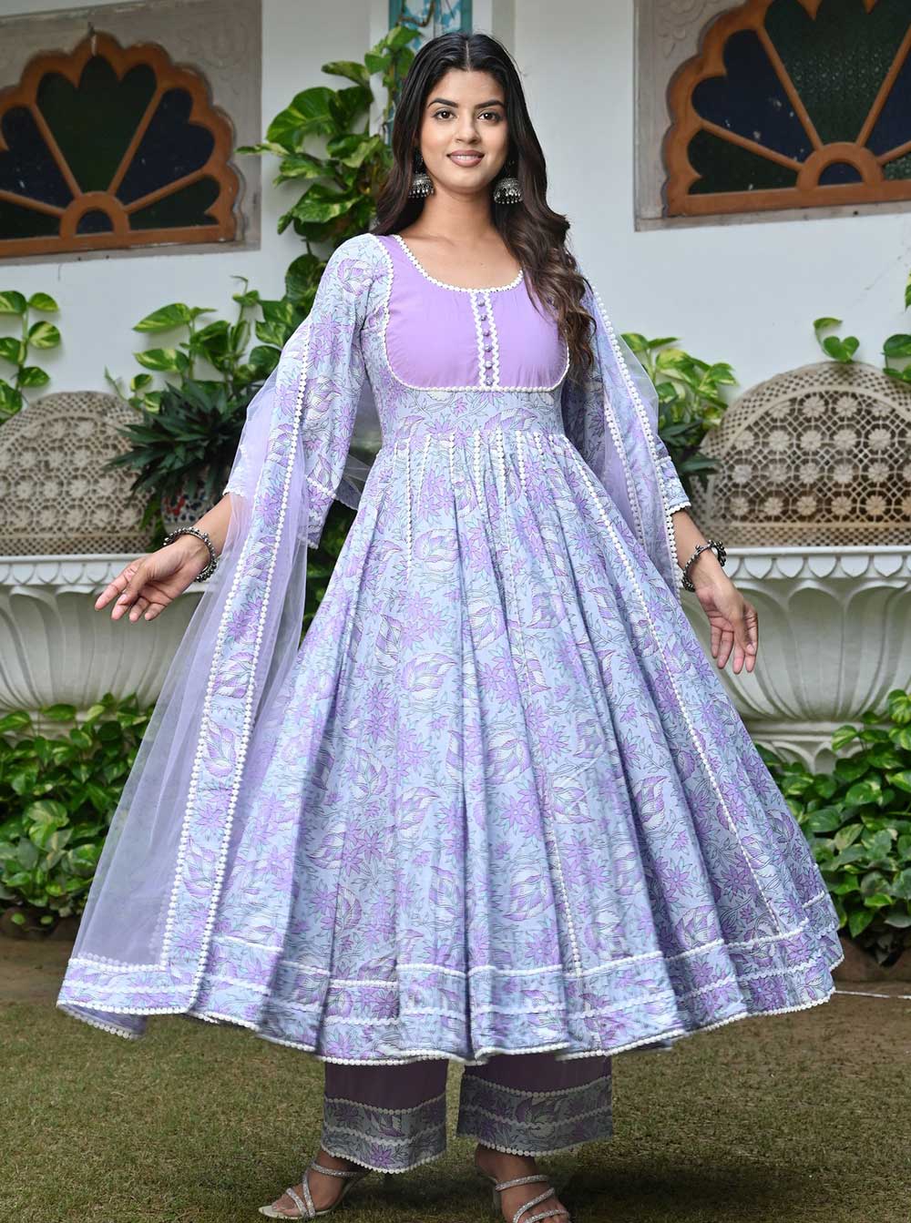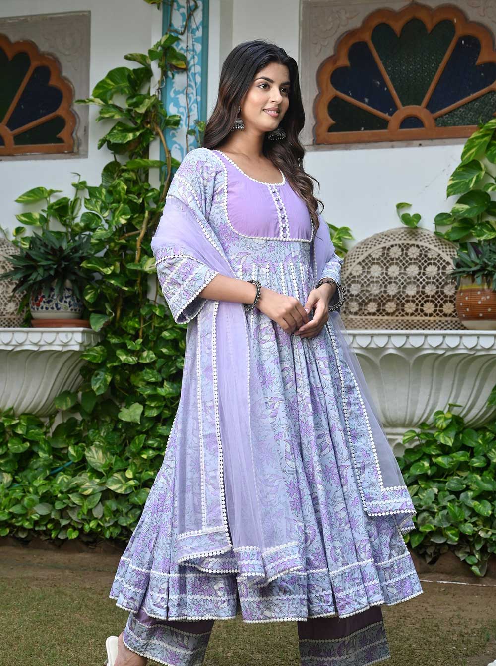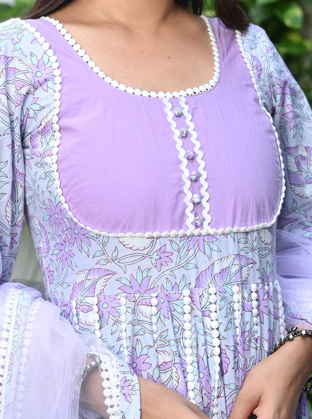 SWEET LILAC FLORAL KALIDAR WITH LACE WORK ANARKALI