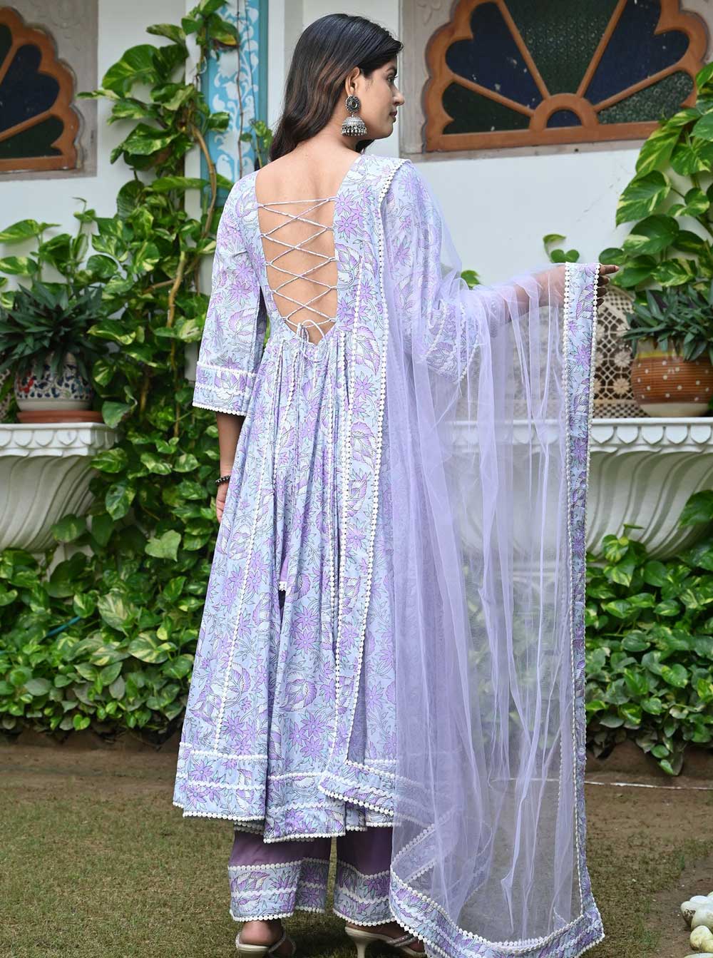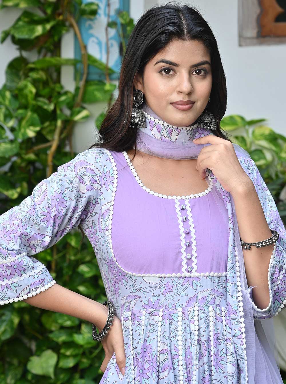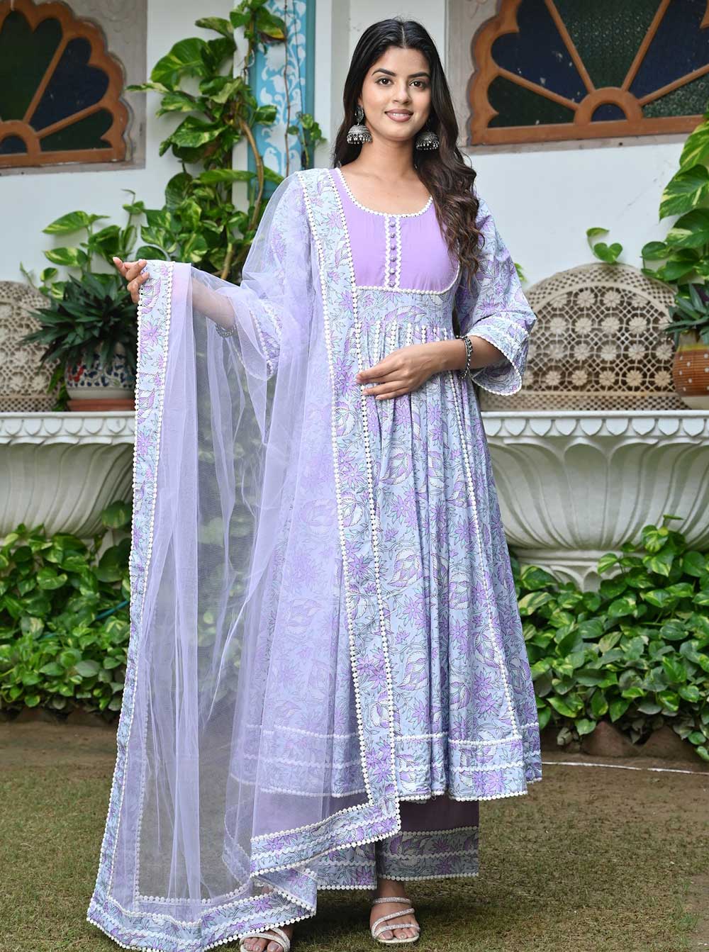 SWEET LILAC FLORAL KALIDAR WITH LACE WORK ANARKALI