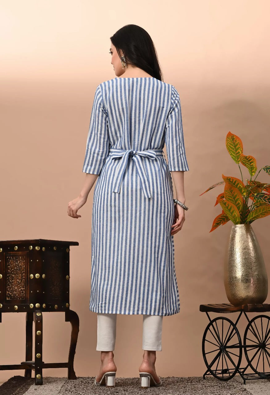 Vilai Jaipur Women's & Girls South Cotton Straight Kurta with Waist Belt